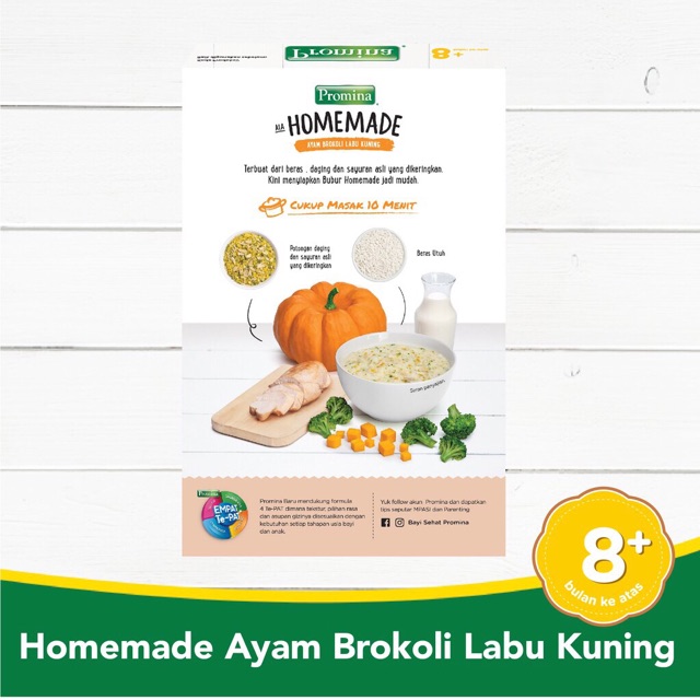 Promina homemade adalah terobosan baru bubur dari promina dengan proses pemasakan cukup 10 menit.